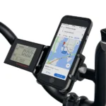 The GUB PRO-3 Phone Mount securely attaches to the handlebars of the ebike and provides a secure location to mount your phone, allowing you hands-free use.